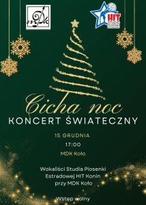 Zapraszamy na Koncert „Cicha noc” w wykonaniu wokalistów SPE HIT na co dzień uczących się w MDK Koło.