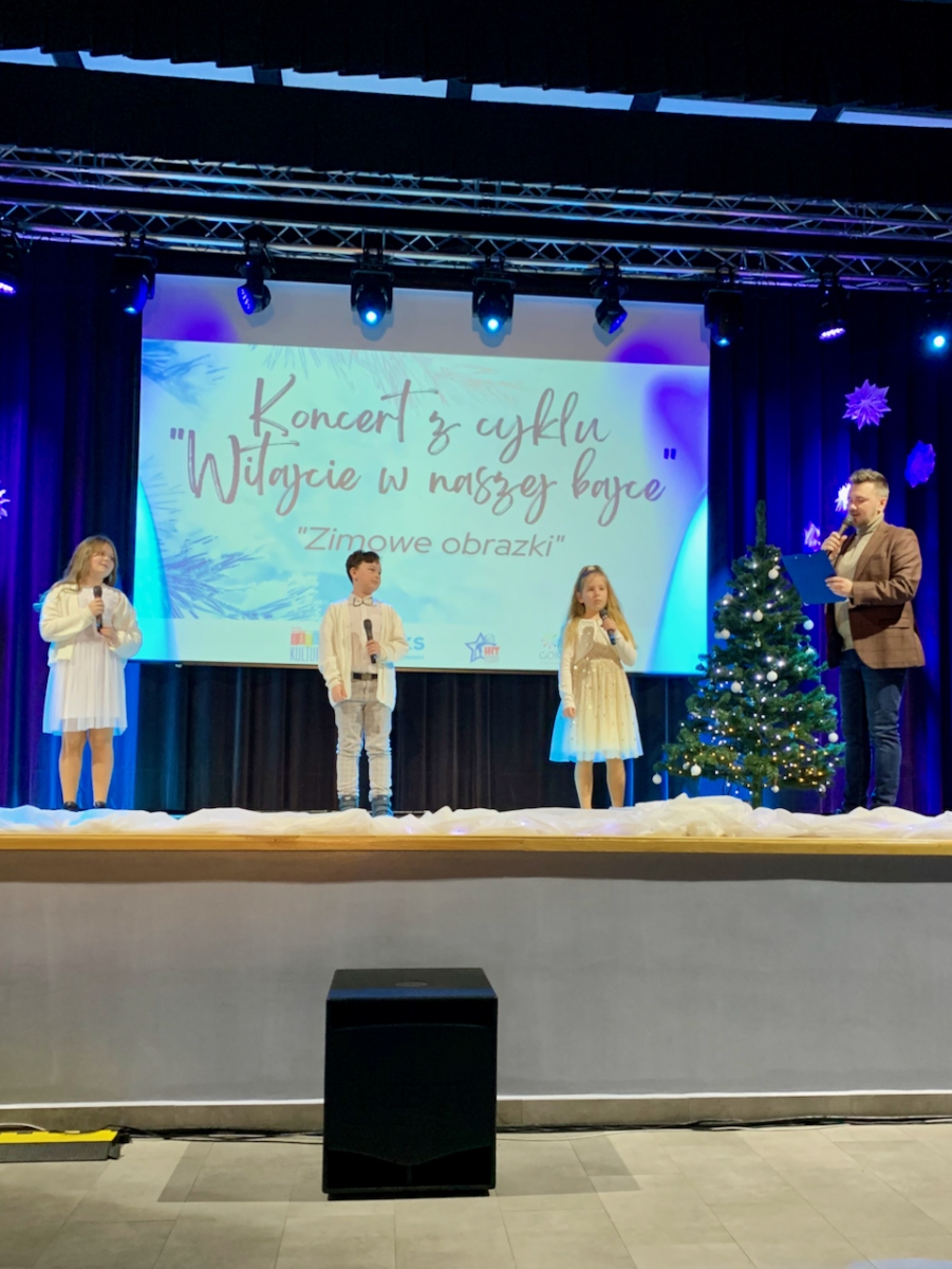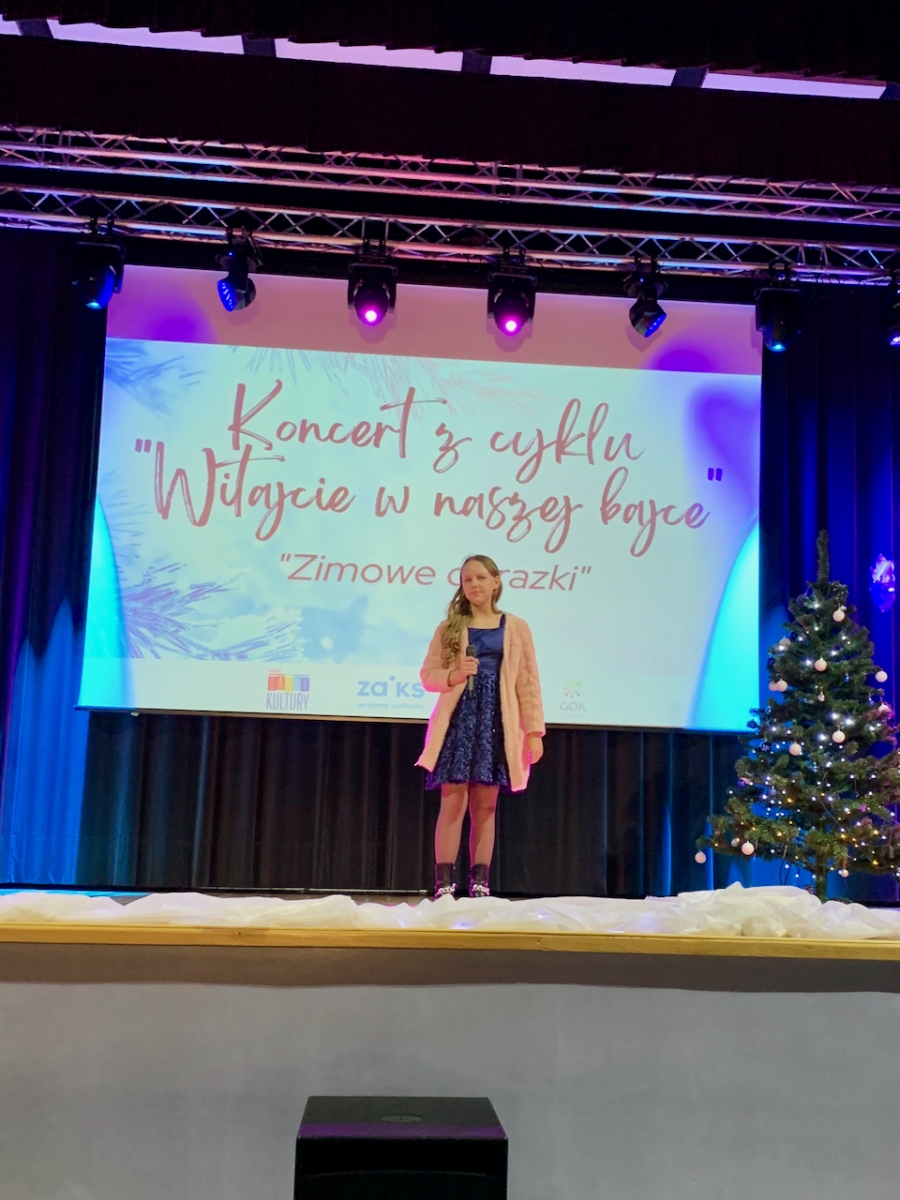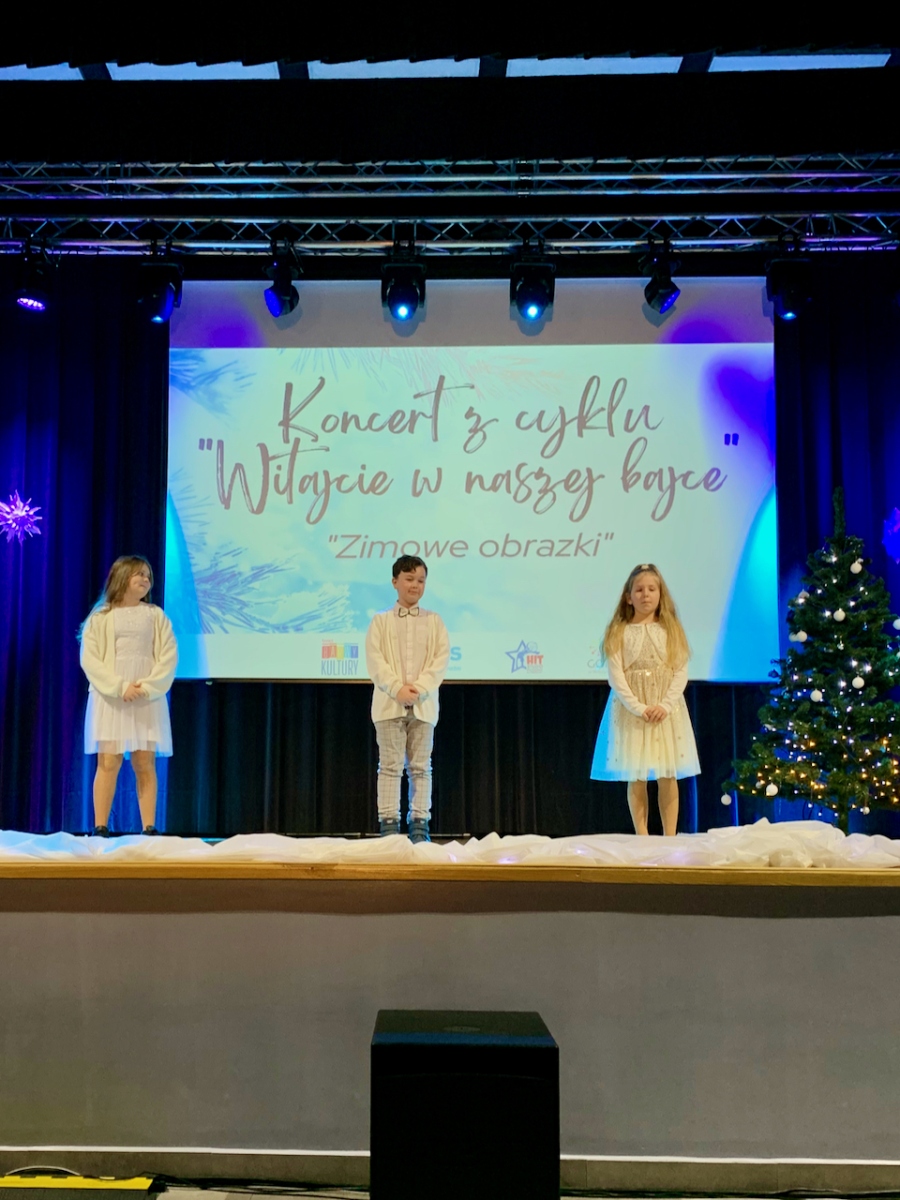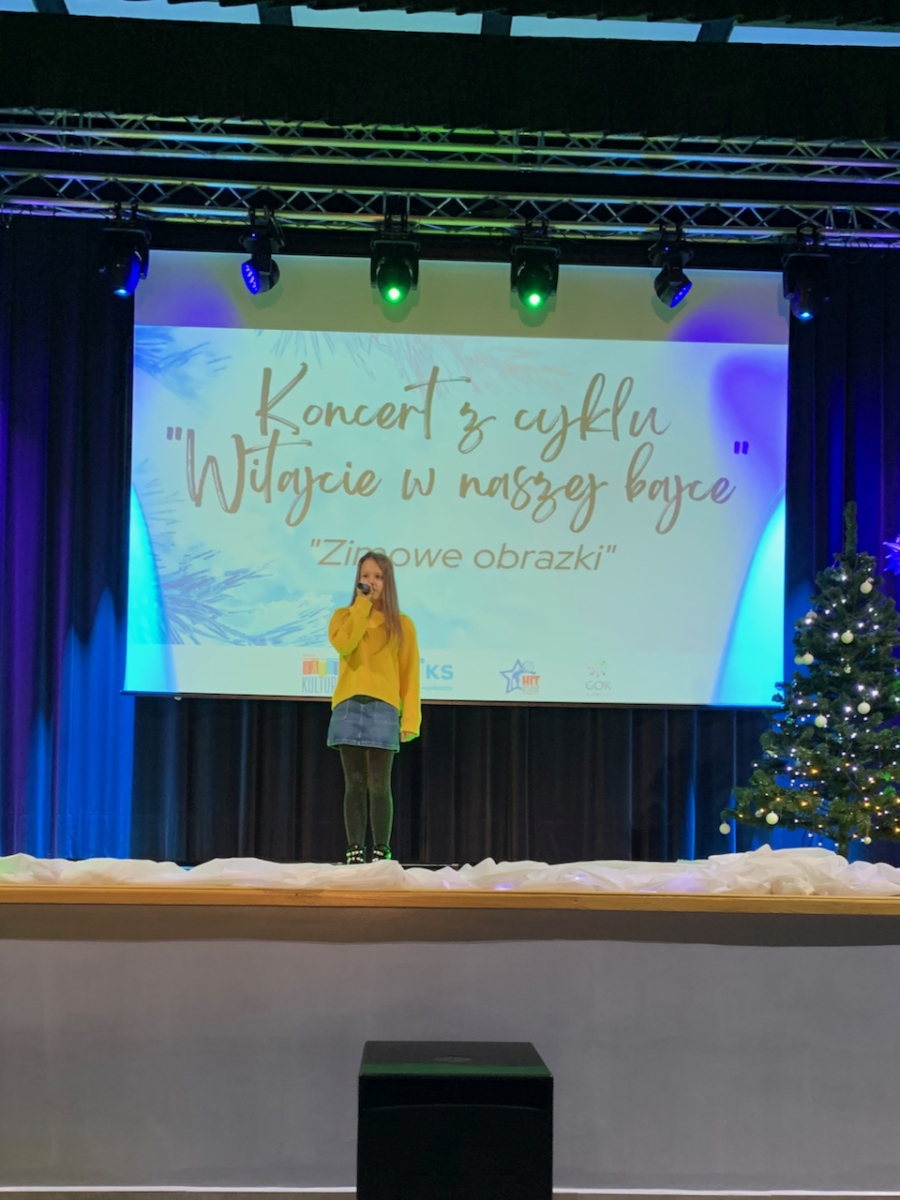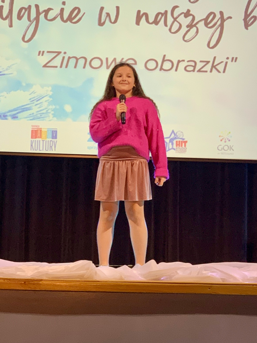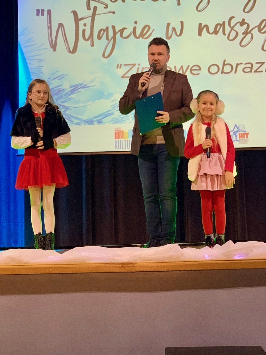 Podczas koncertu „Zimowe obrazki”, który odbył się 15 stycznia 2023r. w sali Gminnym Domu Kultury w Wilczynie publiczność usłyszała najcudowniejsze piosenki zimowe i świąteczne w wykonaniu wokalistów Studia Piosenki Estradowej HIT – Wilczyn. Instruktorką wokalistów jest Aneta Urbaniak.