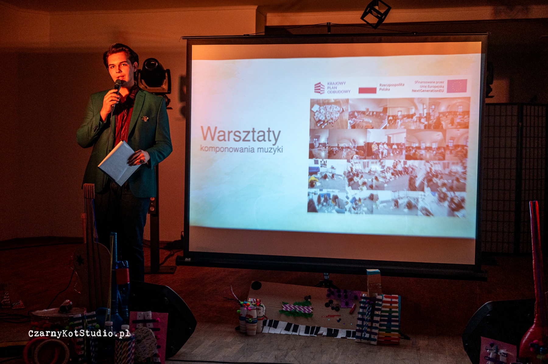 Z radością i dumą ogłaszamy zakończenie projektu „Eko-Muzyka”! To była niesamowita przygoda, podczas której młodzi artyści z subregionu konińskiego stworzyli wyjątkową muzykę inspirowaną naturą. Wspólnie przeszliśmy przez wszystkie etapy projektu: od nagrań dźwięków w plenerze, przez tworzenie instrumentów z recyklingu, po komponowanie i nagrywanie własnych piosenek. Efekty przeszły nasze najśmielsze oczekiwania! Podczas koncertu finałowego, który odbył się 29 grudnia 2024 roku, mieliśmy okazję wysłuchać 8 niezwykłych utworów, które powstały w ramach „Eko-Muzyki”. Każda piosenka to wyjątkowa opowieść o naturze, pełna emocji i ważnych przesłań.