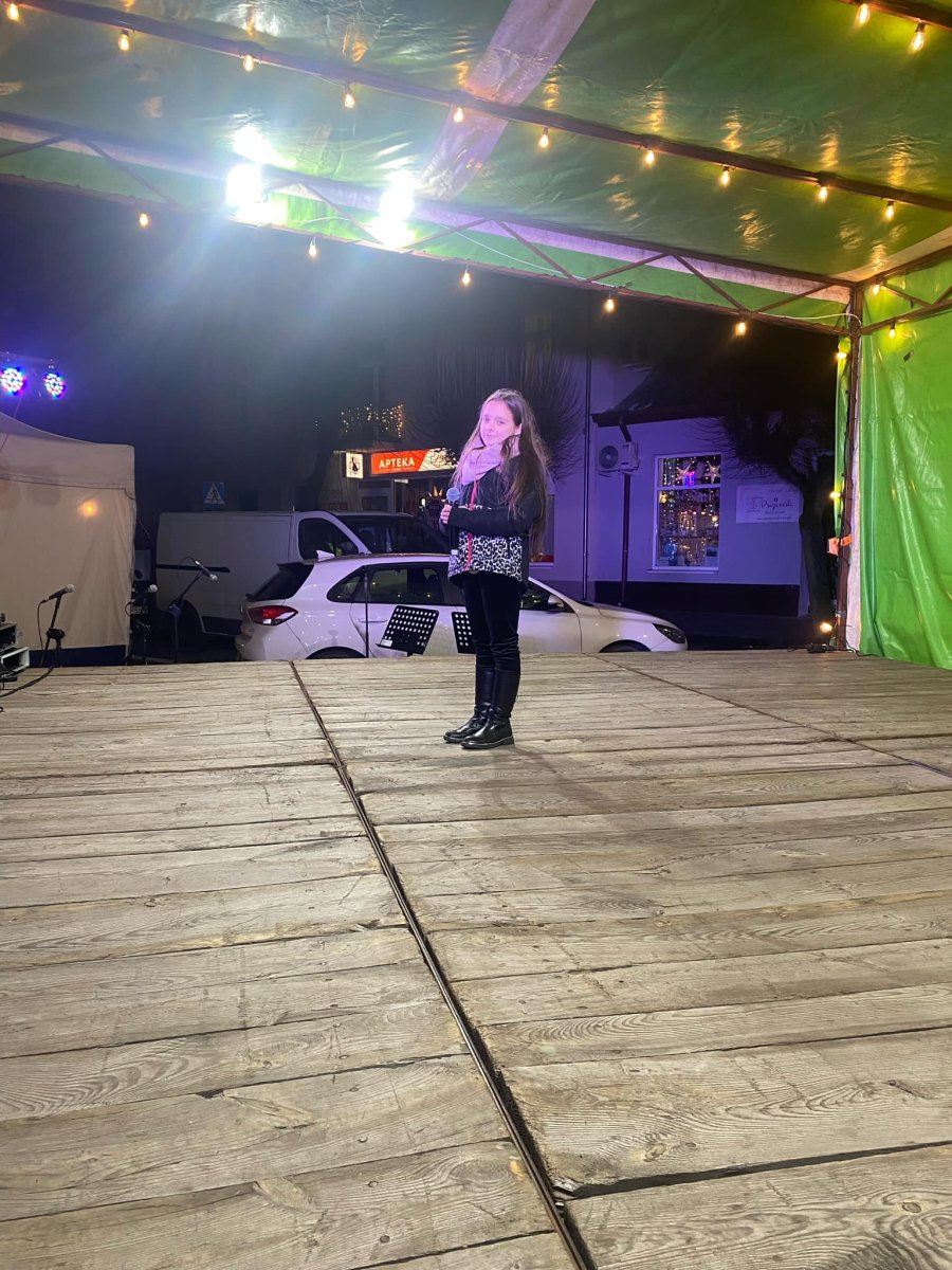 8 grudnia nasi wokaliści mieli przyjemność wystąpić podczas Jarmarku Bożonarodzeniowego w Zagórowie. To był wyjątkowy czas pełen ciepła, radości i świątecznej magii! Wspaniała atmosfera, piękne dekoracje i licznie zgromadzona publiczność stworzyły niepowtarzalny klimat, który na długo pozostanie w naszej pamięci. Młodzi artyści zaprezentowali bogaty repertuar kolęd i świątecznych utworów, wprowadzając wszystkich w nastrój zbliżających się Świąt Bożego Narodzenia. Serdecznie dziękujemy organizatorom za zaproszenie, a publiczności za tak entuzjastyczne i ciepłe przyjęcie. Cieszymy się, że mogliśmy być częścią tego wyjątkowego wydarzenia i dzielić się muzyką, która łączy ludzi i buduje świąteczną wspólnotę.