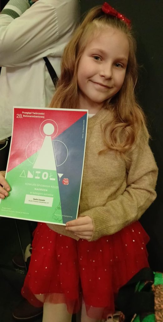 Z wielką radością informujemy, że Nadia Zawada podczas Konkursu Kolęd, odbywającego się w ramach Przeglądu Twórczości Bożonarodzeniowej „Anioły w Epicentrum Kultury”, wyśpiewała nagrodę!